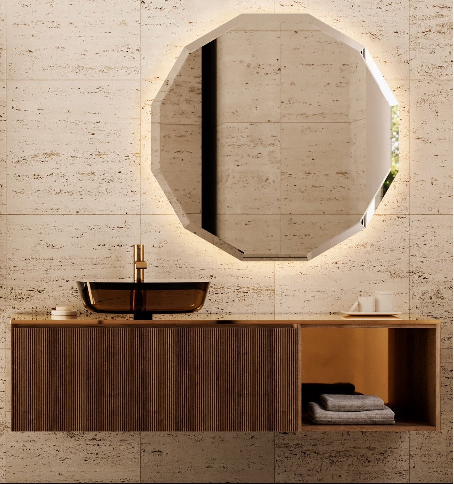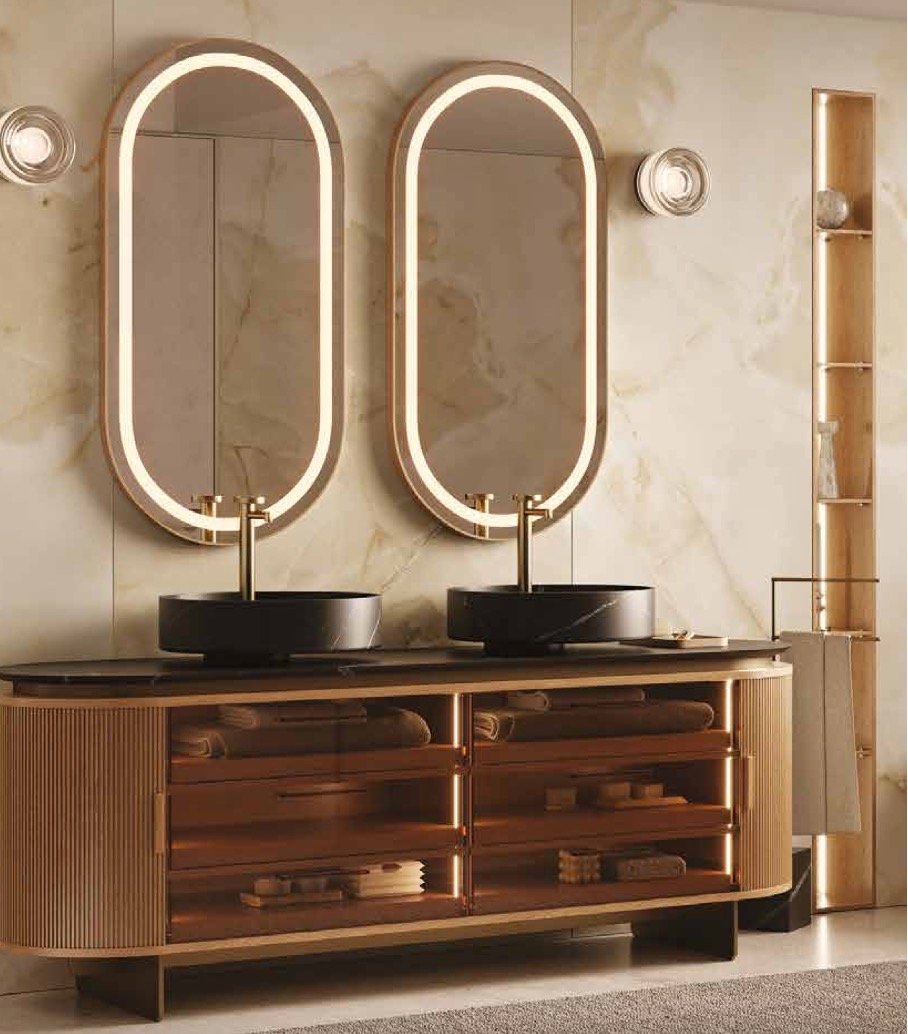 Artelinea, société florentine, maîtrise l’art du miroir sur-mesure.Chaque pièce est pensée comme une alliance de technologie et d’esthétique : éclairage intégré, variateur (dimmer), système anti-buée, radio et bien d’autres options viennent sublimer votre quotidien.