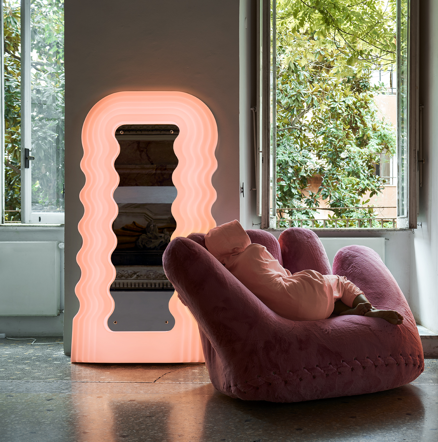 Le miroir Ultrafragola a été conçu par Ettore Sottsass Jr. dans une couleur unique et spécifique : le rose clair. en 1970.