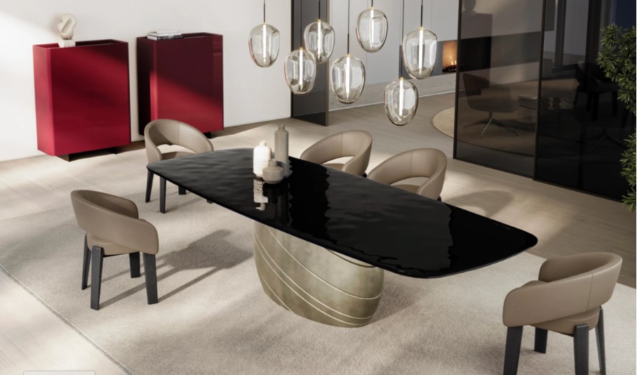 La table Giove avec plateau en verre est une pièce sculpturale au design affirmé. Le designer Andrea Lucatello s’est inspiré de la planète Jupiter, quatrième astre le plus brillant du ciel.