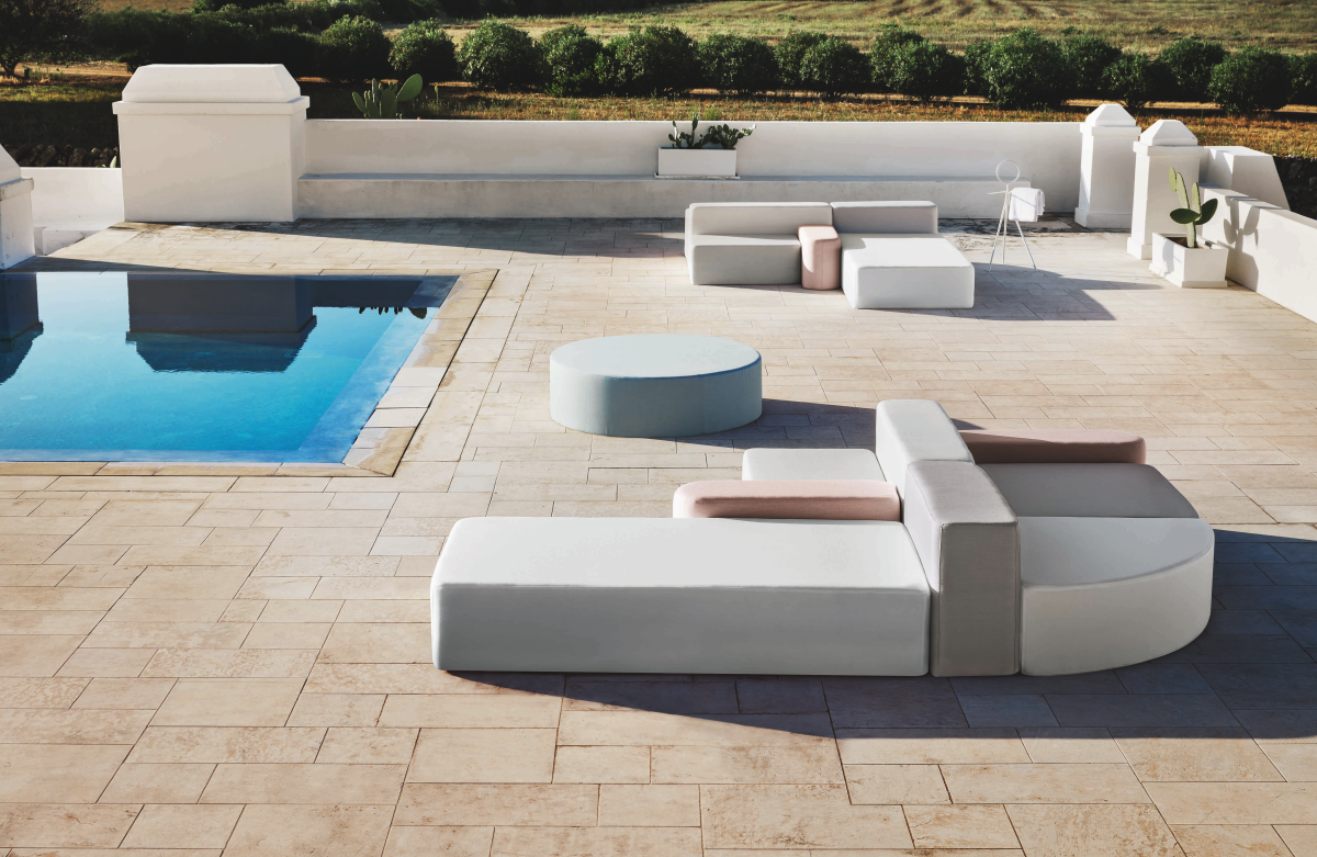 Collection Echoes In/Outdoor. Cette collection incarne à la fois l'ouverture et l'abri, peu de frontière entre l'intérieur et l'extérieur.