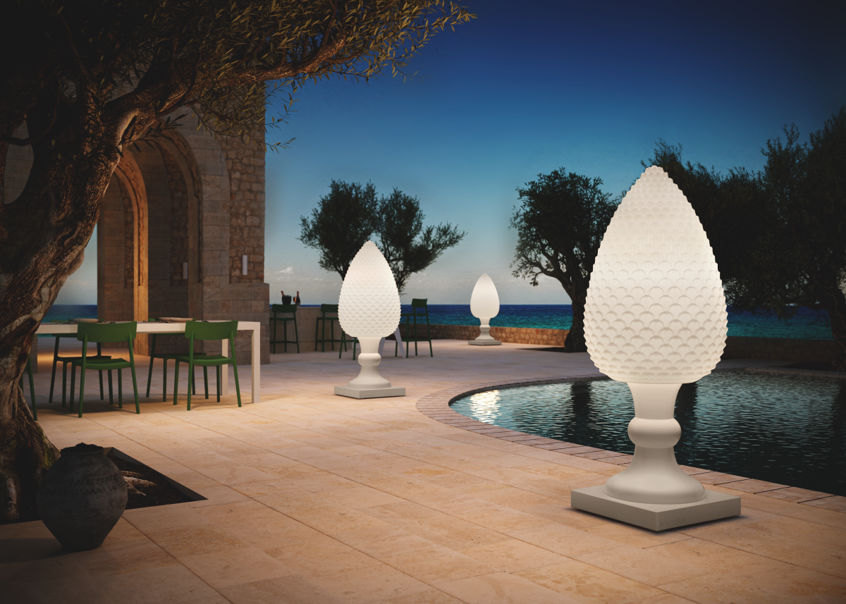 Pina est la nouvelle lampe emblématique de MY YOUR, une création sculpturale inspirée de la pomme de pin sicilienne, symbole ancestral de santé, de prospérité et de chance.