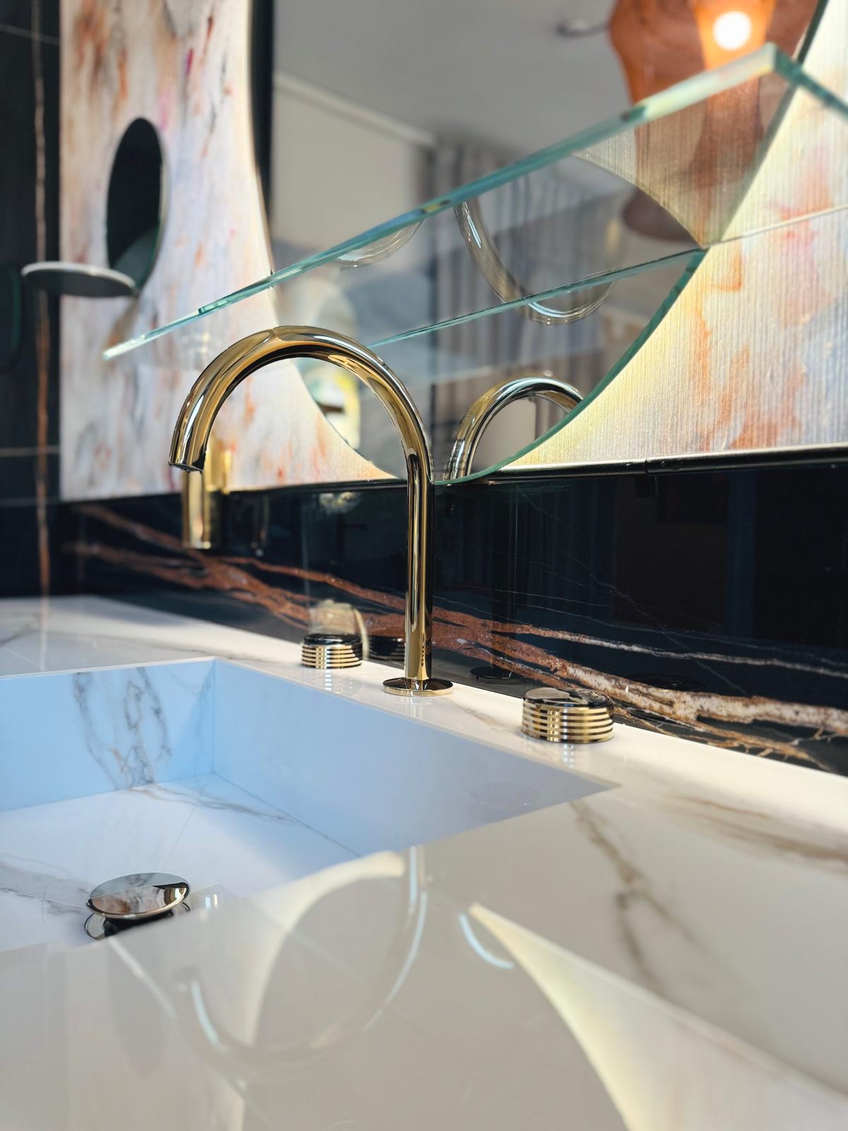 Collection Texture collection Réf F5611, finition gold. Multitude de finitions au choix pour les poignées, ici en marbre.