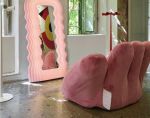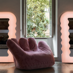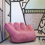 Structure en métal, recouvert de mousse en polyuréthane préformée, recouvert de microfibre rose.
